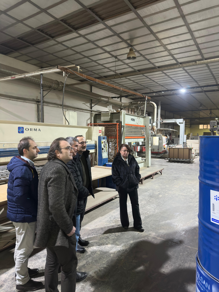 Gerçekleştirilen teknik inceleme kapsamında firmanın yalıtım malzemeleri ve ahşap ürün üretim süreçleri yerinde gözlemlendi; üretim altyapısı, kalite kontrol mekanizmaları ve Ar-Ge çalışmaları hakkında bilgi alındı.
